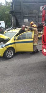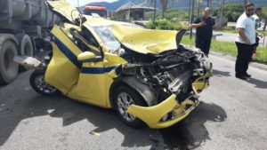 Havia naquele taxi, um motorista identificado como Laércio saiu milagrosamente do acidente sem nenhum arranhão.