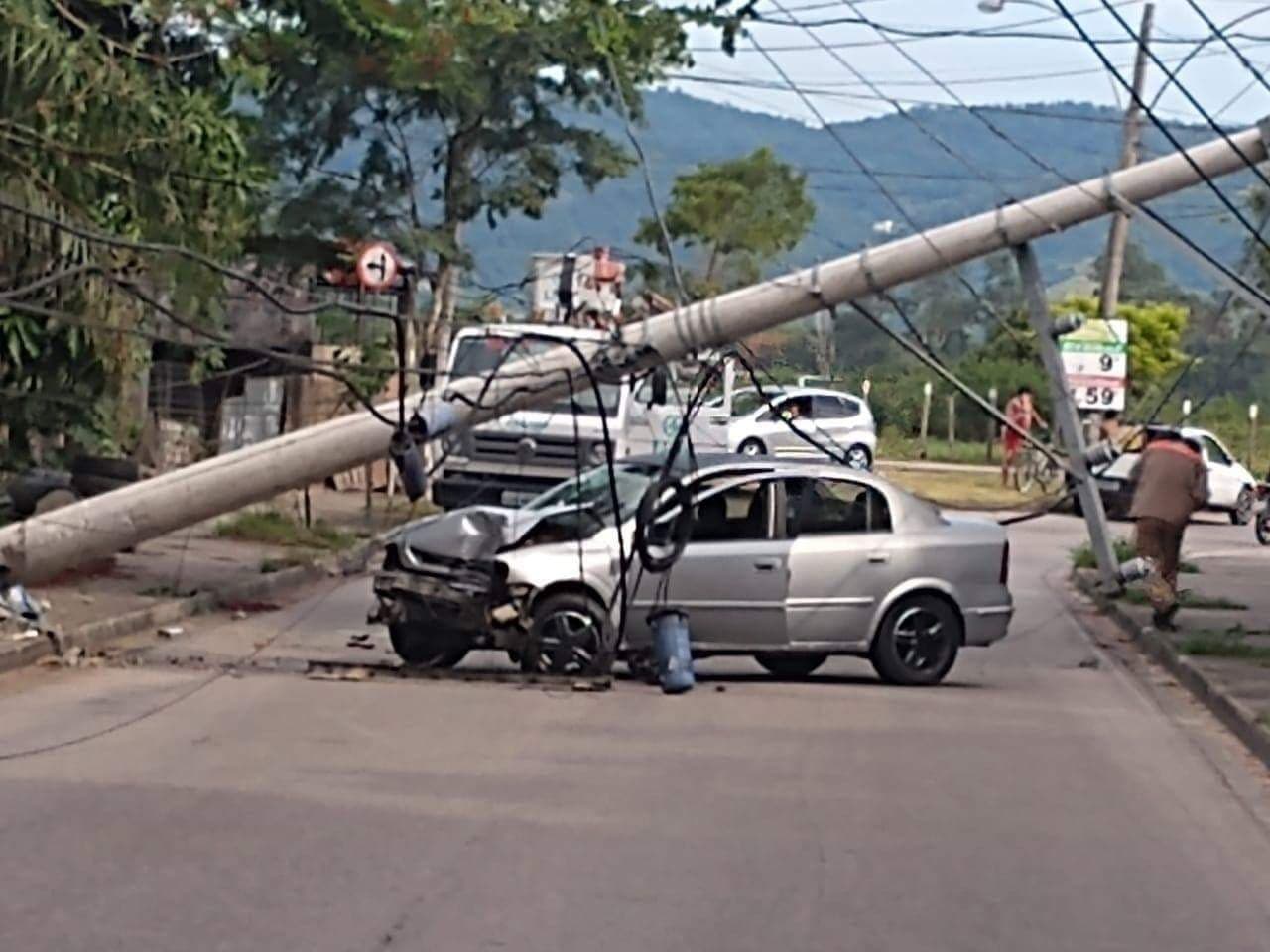 MOTORISTA QUE FUGIA DE ASSALTANTE DERRUBA POSTE NA ESTRADA DO MATO ALTO