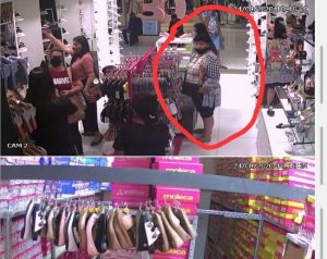 “Entrei na loja e logo atrás veio esse homem que está na entrada de blusa azul e ficou no telefone o tempo inteiro logo após chegou as mulheres todas juntas e duas ficaram na entrada e uma entrou na loja e pediu para vendedora pegar um tênis e falou que não estavam juntas e logo depois foi fazer parede para mim e para minha mãe não ver elas pegando a bolsa e logo após saíram as 3 sem comprar nada foi por volta das 17hrs na loja Marias dentro do Bangu shopping, dentro da bolsa tinha 2 celulares, cartão de débito, documentos, bolsa com sapato que tinha acabado de comprar, roupas da minha filha que tinha acabado de comprar, dinheiro e outras coisas que comprei em outras lojas.”