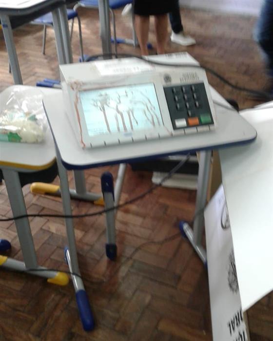 Uma mulher descontrolada, de 25 anos, passou um absorvente sujo de sangue em uma urna na Escola Maria Inês Rodrigues de Mello, em Ibiporã, na manhã deste domingo, 7. Na sequência, ela arremessou a urna no chão e ela saiu correndo.