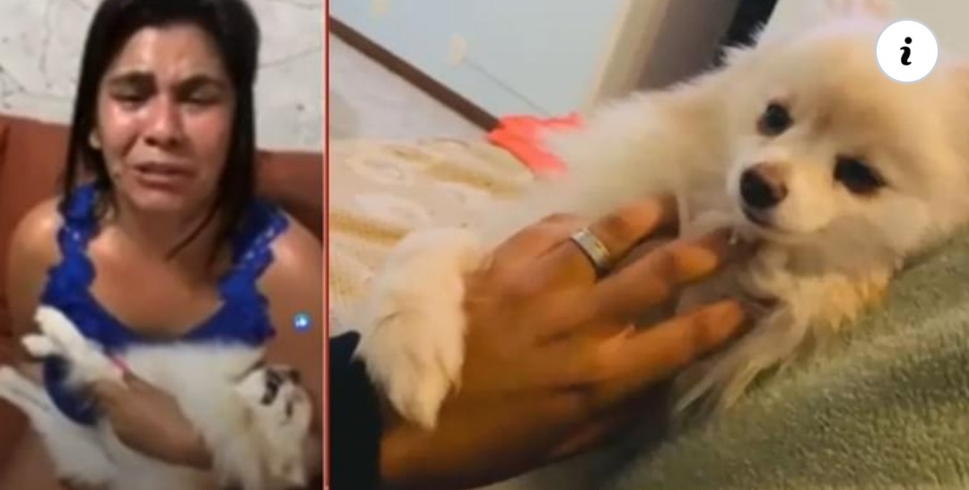 Em vídeo publicado nas redes sociais, a empresária Larissa Marques chora com o cão no colo. “Eles devolveram meu filho morto”, diz, aos prantos.