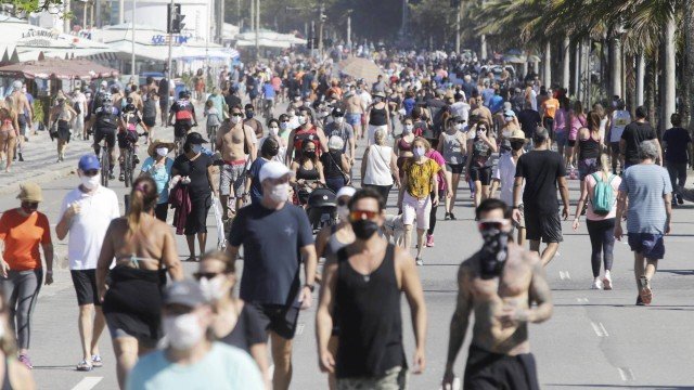 A combinação de um dia ensolarado com as medidas de flexibilização adotadas pela Prefeitura do Rio levou os cariocas à praia neste domingo, em meio à pandemia do novo coronavírus. Areias e calçadões cheios, muitas pessoas sem máscara e sem respeitar o distanciamento. No fim do dia, enquanto os banhistas iam para casa, a Secretaria estadual de Saúde confirmou mais mortos pela Covid-19: em todo o estado, no início da noite deste domingo, eram contabilizados 138.524 casos e 12.114 óbitos. Na capital fluminense, 66.909 e 7.703, respectivamente.