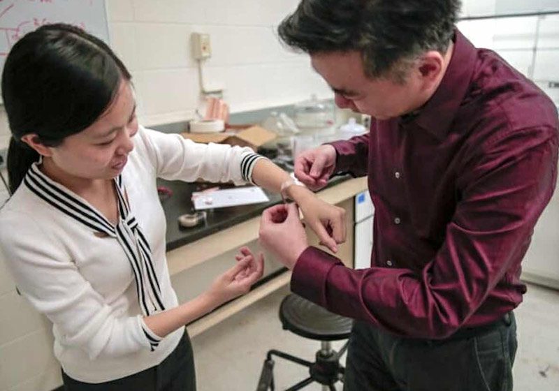 “Nosso dispositivo é tão conveniente quanto um band-aid que você coloca em sua pele”, diz Wang.