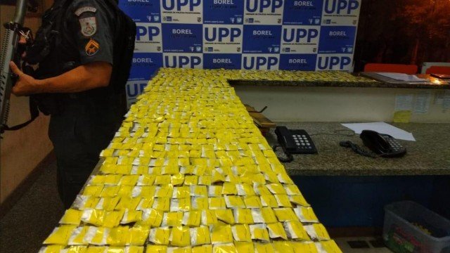 Policiais militares abordaram o criminoso enquanto ele descia o morro num carro, em que estavam 750 papelotes de cocaína, além de certa quantidade de dinheiro em espécie e um celular. O material encontrado foi apreendido.