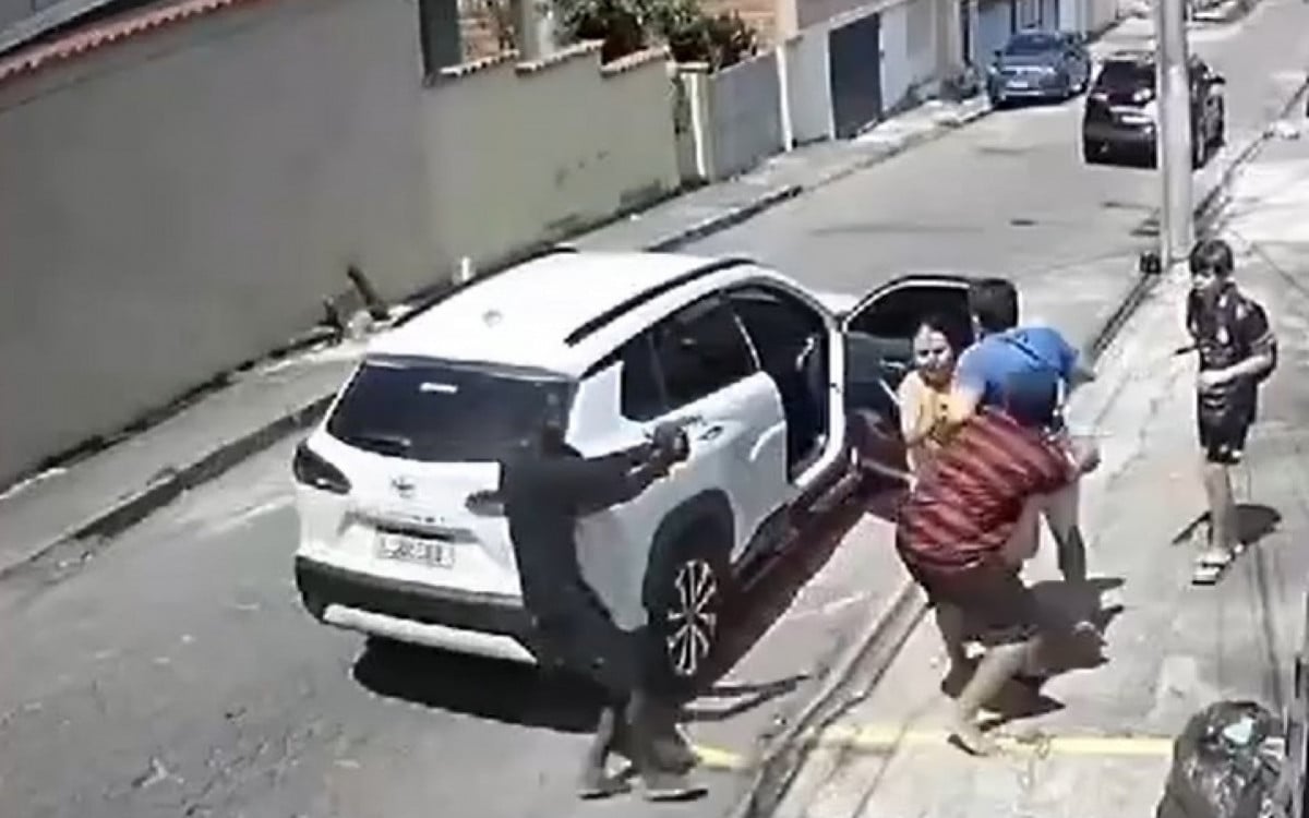 Um policial militar de folga enfrentou uma situação tensa na frente de sua casa no bairro de Bento Ribeiro, Zona Norte do Rio, ao reagir a uma tentativa de assalto e evitar que seu carro fosse roubado. O incidente ocorreu no início da tarde desta segunda-feira (6). Duas câmeras de segurança capturaram o momento em que os assaltantes, que haviam chegado em um carro preto, abordaram o policial e um adolescente que estava no carro do policial. Os criminosos exigiram que eles saíssem do carro e começaram a roubar itens pessoais como aliança e relógio.