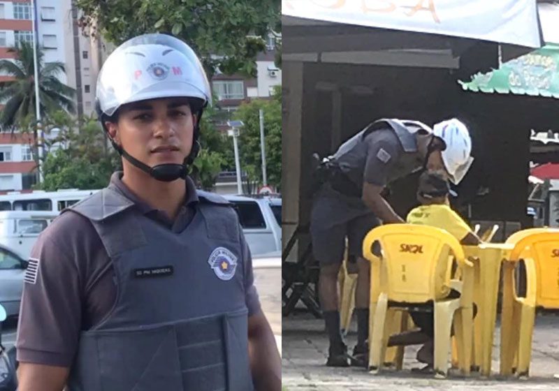 O policial o levou até um quiosque e pagou um lanche para o menino. Enquanto eles conversavam, uma moradora de São Vicente, no litoral de São Paulo, viu a cena, se emocionou e fotografou tudo.