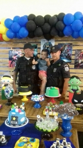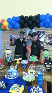 Ontem (21), tivemos um chamado mais que especial. O pequeno Heitor que completou #3Anos, pediu para mamãe a festa com o tema #PolíciaMilitar. E seu desejo foi realizado, tivemos a Honra de está presente nesse momento tão especial na vida do Heitor. O #40Bpm foi representado pelo Sub Melo, Sgt Giovanni, Sgt Murta e Sd Luiz.