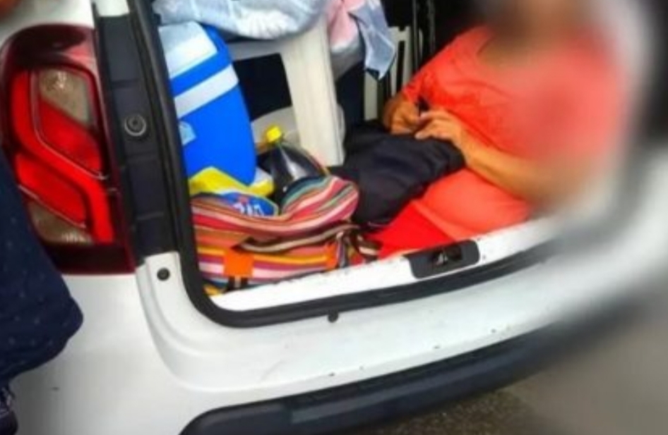 Na manhã desta quinta-feira (13) os policiais militares rodoviários do posto 1, em Florianópolis, abordaram um Renault Duster de uma família argentina, na SC 401, que transitava com irregularidades. Uma delas era a falta de cadeirinha para uma criança. A outra era mais inusitada. A sogra estava no porta-malas do veículo junto aos apetrechos de praia.