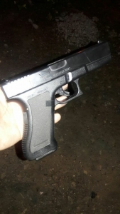 após serem informados que uma dupla havia roubado 01 aparelho Celular de um motorista de táxi. No local teve êxito em localizar os elementos que que estavam em posse de 01 Simulacro de Pistola. A ocorrência foi encaminhada a 35 DP.