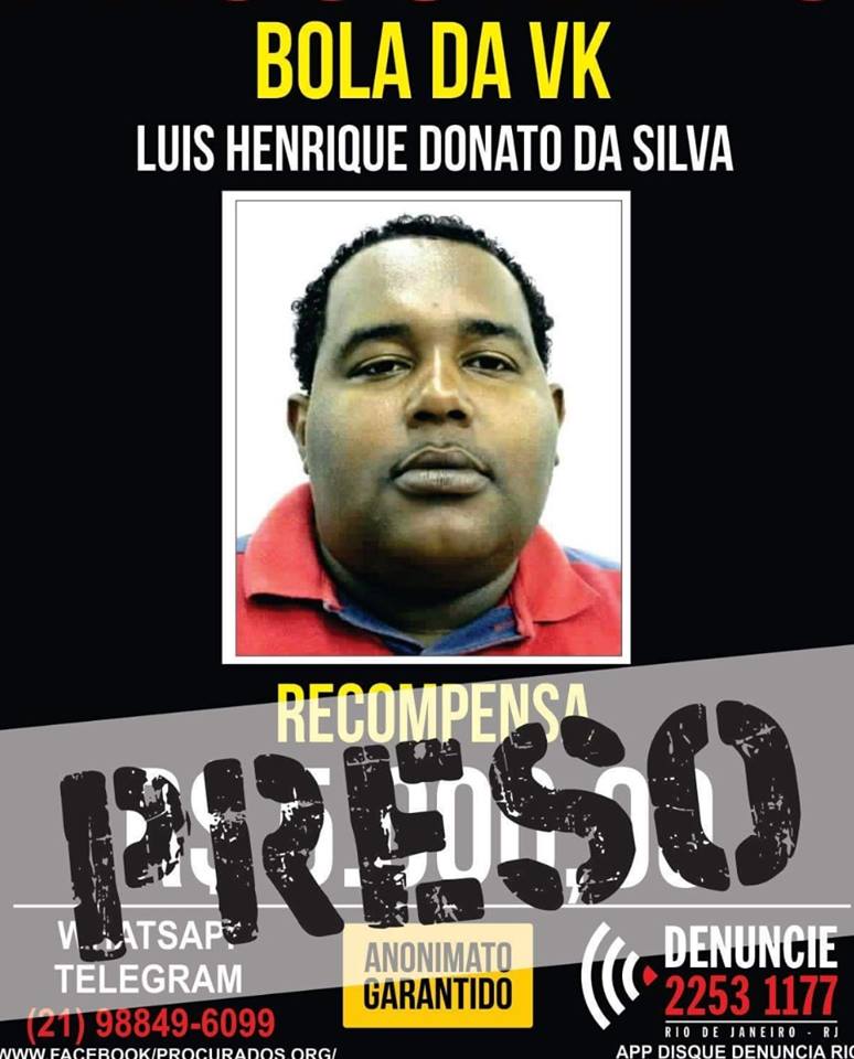 Policiais militares do 14º BPM – Bangu – prenderam na manhã desta quinta-feira (21) em Bangu, na zona oeste do Rio, Luis Henrique Donato da Silva, o Bola da VK, de 31 anos. Ele seria um dos suspeitos de envolvimento na morte do 2º sargento do Exército Bruno Albuquerque Cazuca, durante um arrastão em fevereiro deste ano. Foi constatado também que Bola era Gerente do tráfico da localidade conhecida como Praça Maiame VK, na Vila Kennedy, Zona Oeste do Rio