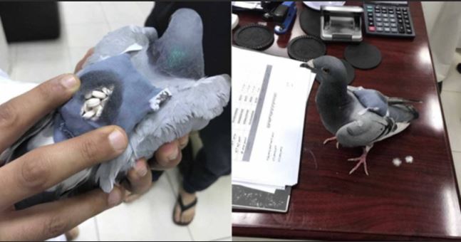 Entretanto, descobriram que o bicho é bom pra transportar drogas. Afinal, se ele for pego, quem vai preso? Essa pomba estava com um carregamento relativamente grande: 178 pílulas de ecstasy.