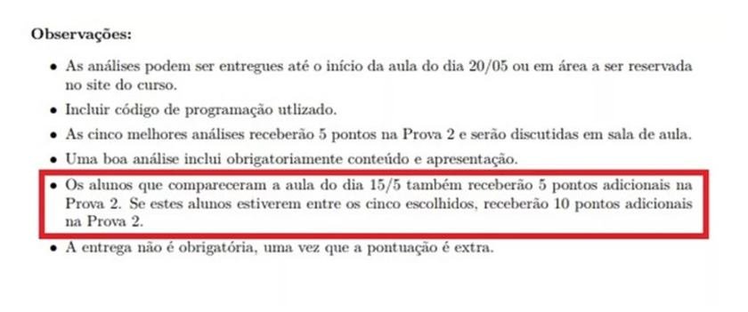 Os cinco alunos melhores avaliados na análise receberiam outro bônus: cinco pontos a mais cada um.