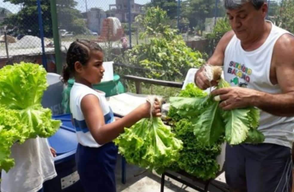 Professor de Técnicas Agrícolas do município desde 1977, Lúcio Teixeira, de 65 anos, armou sua sala de aula ao ar livre no Ciep Francisco Cavalcanti Pontes de Miranda, em Campo Grande. No terreno dos fundos da escola, ele construiu duas hortas: uma hidropônica, no formato de estufa, e outra bem mais tradicional, orgânica, sem uso de agrotóxicos.