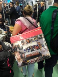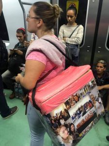 Menina guerreira que trabalha nos trens vendendo os doces que elas mesma produz (doces como; palha italiana, trufas, cones recheados e sacolés gourmet.)
