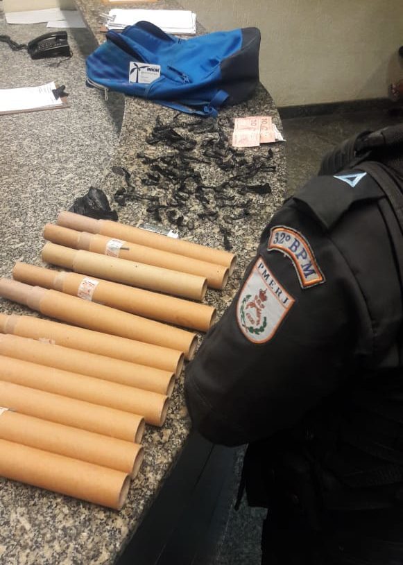 Com os presos, a PM apreendeu 60 papelotes de cocaína, 11 fogos de artifício intactos, 28 fogos de artifício deflagrados, R$ 27 em espécie, uma mochila e dois aparelhos celulares.