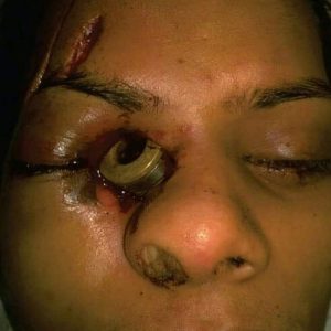 Não havia percepção da luz no olho direito, foi eviscerada automaticamente com tecido uveal exposto e tampa superior edemaciada.