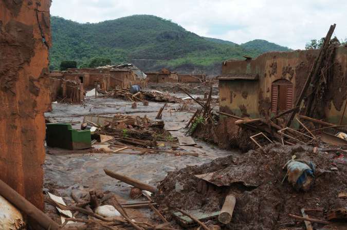 Segundo perícia da Polícia Civil, em novembro de 2015, havia uma grande quantidade de água na barragem em vez de lama, o que tornou a drenagem do sistema insuficiente e gerou o rompimento. A barragem de Fundăo, no distrito de Bento Rodrigues, em Mariana, pertence à mineradora Samarco, propriedade da Vale e da empresa australiana BHP Billiton. Com a destruiçăo, um mar de lama de rejeitos de minérios vazou e atingiu mais de 40 cidades, matando 19 pessoas.