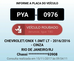 “Roubaram ontem por volta das 18:00hs o carro do meu amigo. Ele é motorista de Uber, veículo Ônix placa PYA 0976.