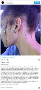 A jovem, que é enfermeira, disse, na publicação, que foi esfaqueada por simplesmente ser preta. “Fui esfaqueada bem na frente da minha casa, porque eu sou preta. Uma mulher me perseguiu e começou a me esfaquear”, afirmou Yasmine.