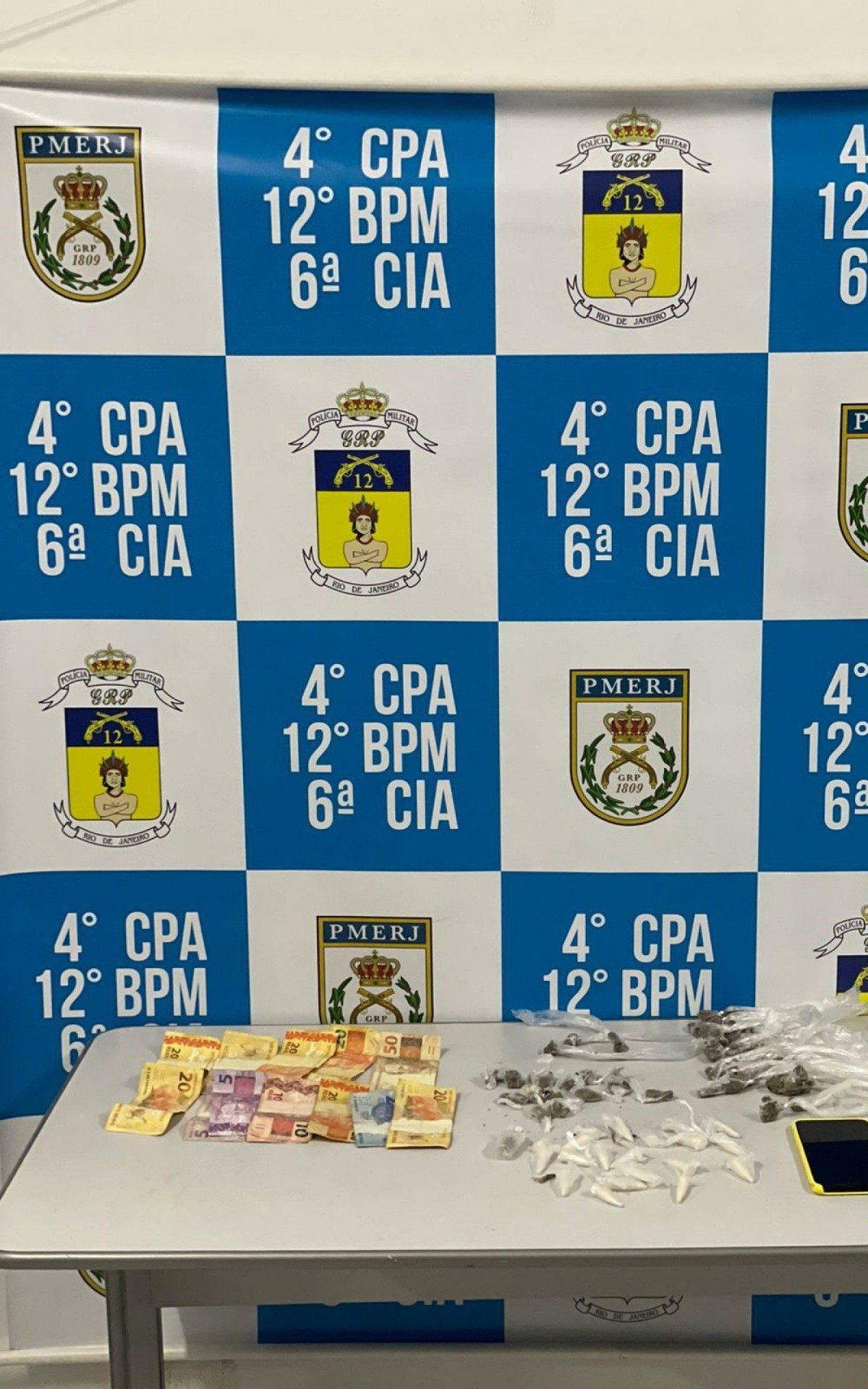 Com ele os policiais apreenderam maconha, pinos de cocaína e dinheiro da venda de drogas. A ocorrência foi encaminhada para a 76ª DP (Centro-Niterói).
