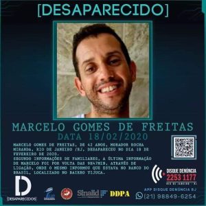 “Este é Marcelo Gomes de Freitas, de 42 anos, morador Rocha Miranda, Rio de Janeiro /RJ. Desapareceu no dia 18 de fevereiro de 2020.