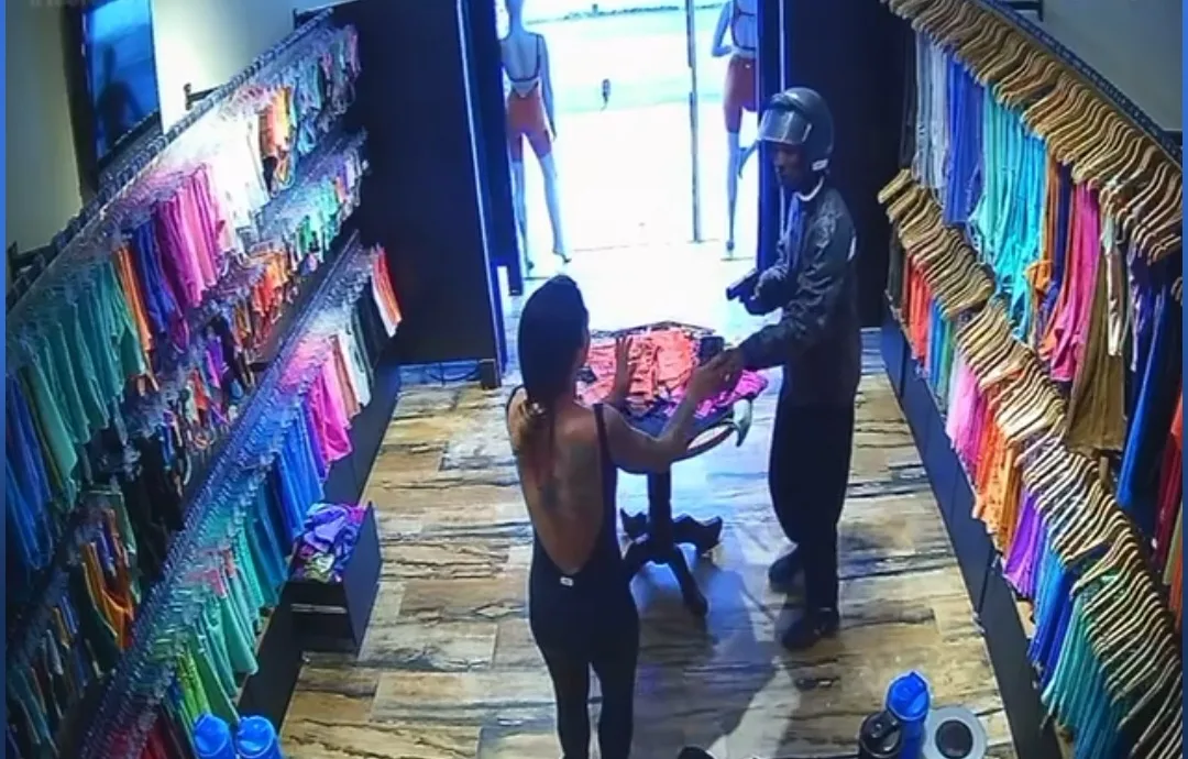 As imagens do circuito interno da loja mostram o momento exato em que o homem entra, saca a arma e rende a funcionária, que mal teve tempo de reagir. O vídeo revela ainda o desespero da vítima, que, em pânico, levanta as mãos e tenta se afastar. O registro é mais uma prova do clima de insegurança que ronda o comércio da região.