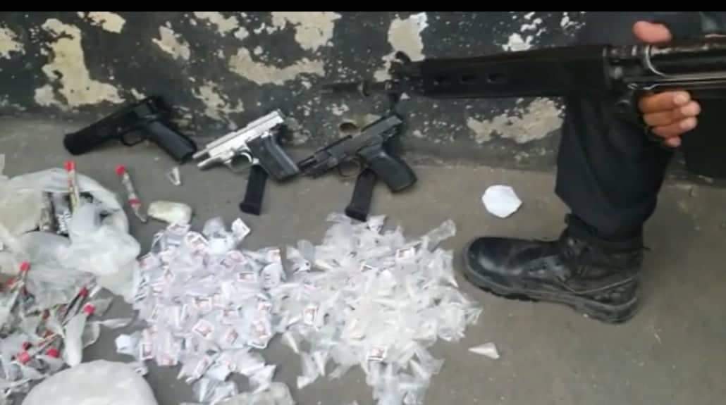 A PM informou ainda que na ação os policiais apreenderam um simulacro de pistola, duas pistolas, um radiotransmissor, e grande quantidade de material entorpecente.