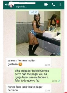 Nesse mesmo contexto, uma imagem contendo um print de uma suposta conversa dos dois viralizou. Na conversa ela já atentava que, se não houvesse o pagamento, iria à igreja fazer escândalo.
