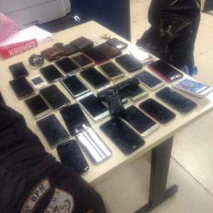 “Hoje (12),após receber informações que o veículo NISSAN/LIVINA cor preta havia sido roubado na estrada do Mato Alto e seguia em direção à Campo Grande, policiais do #40BPM realizaram o cerco e o GAT teve êxito em localizar o veículo na Estrada do Cachamorra. Ocorrência encaminhada a 35 DP com 03 Indivíduos presos, 01 Simulacro de pistola , 01 Veículo recuperado e diversos aparelhos telefônicos e pertences pessoais. ”