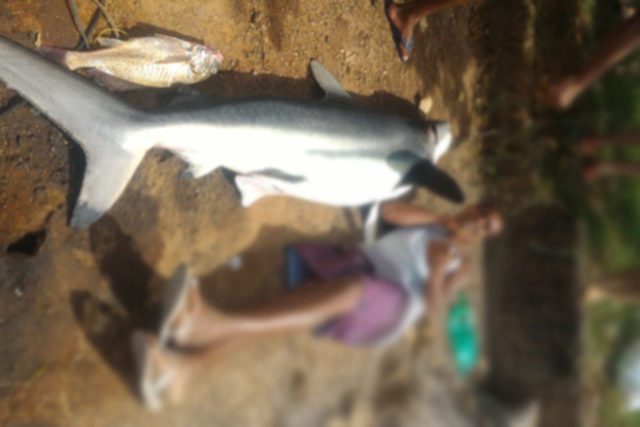 Um tubarão foi capturado, por pescadores, no mar de Ponta Negra, em Maricá. O animal da espécie galha-preta, tinha quase dois metros.