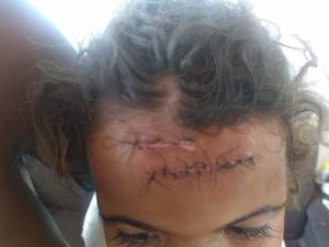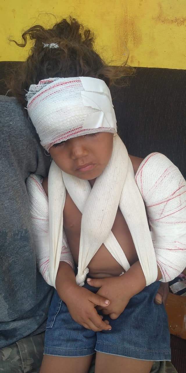 Ela estava toda machucada com os dois braços quebrado e dois cortes profundo na cabeça