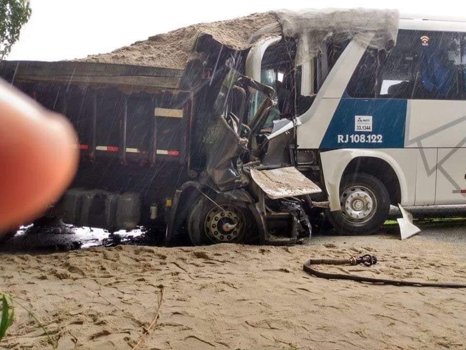 URGENTE – DOIS MORTOS EM COLISÃO ENTRE ÔNIBUS DA EMPRESA 1001 E CAMINHÃO NO RJ