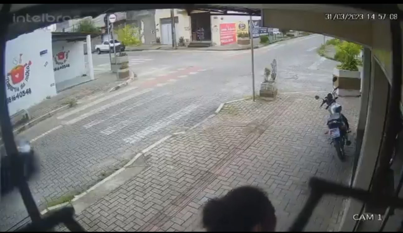 Em imagens de câmeras de segurança do local, o comerciante está na frente da loja conversando com o filho dele, quando foi surpreendido por dois homens.