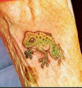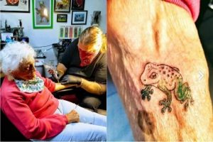 Acompanhada da neta, Dorothy Pollack realizou uma vontade antiga e tatuou um pequeno sapo verde no antebraço
